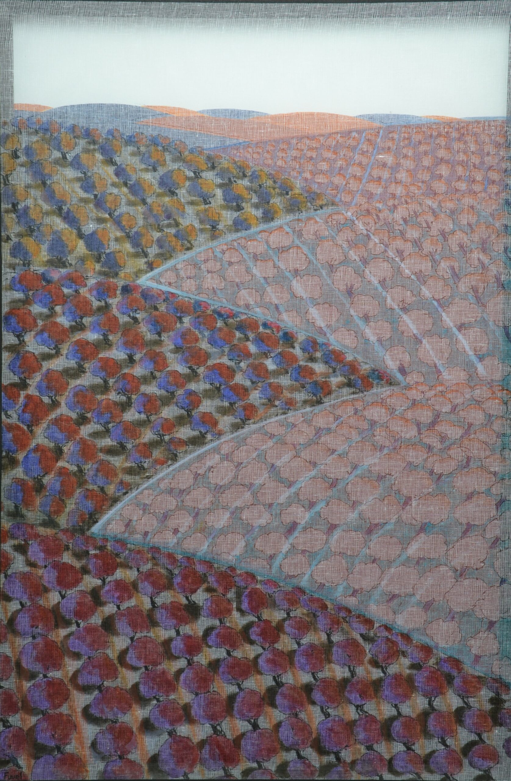 Quand on peint à la main, on retrouve en petit les mouvements des champs de jadis, parcourus d’autant de lignes, de forces et de fractures. C’est l’essence des paysages, avec au loin l’herbe plus verte, les montagnes bleues, le soir qui marque le retour au foyer qiu’on avait.