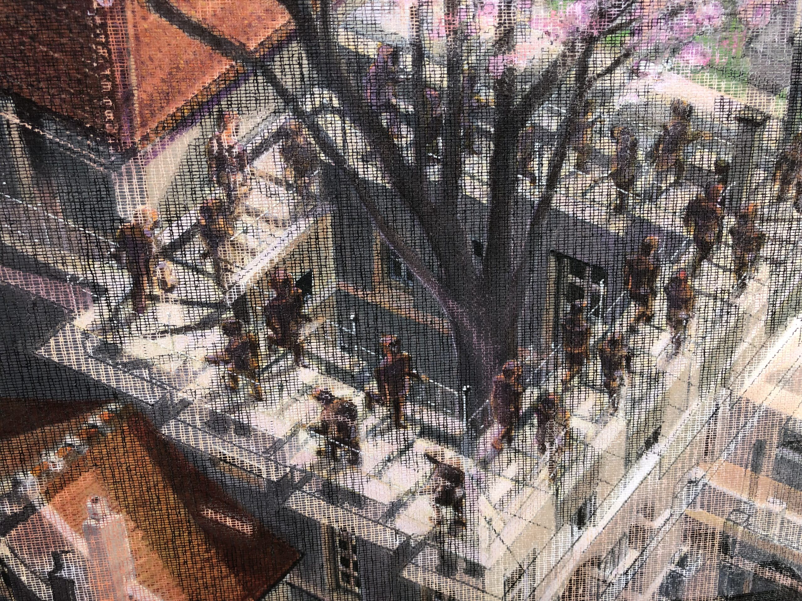 j’ai voulu rendre hommage à ce génial dessin en montrant qu’il n’y a pas lieu de se désespérer pour autant! La beauté de la vie symbolisée par le cerisier en fleur (qui se trouve être celui du parc près de chez moi) surgit de cet enchainement, le dépasse et le surplombe.